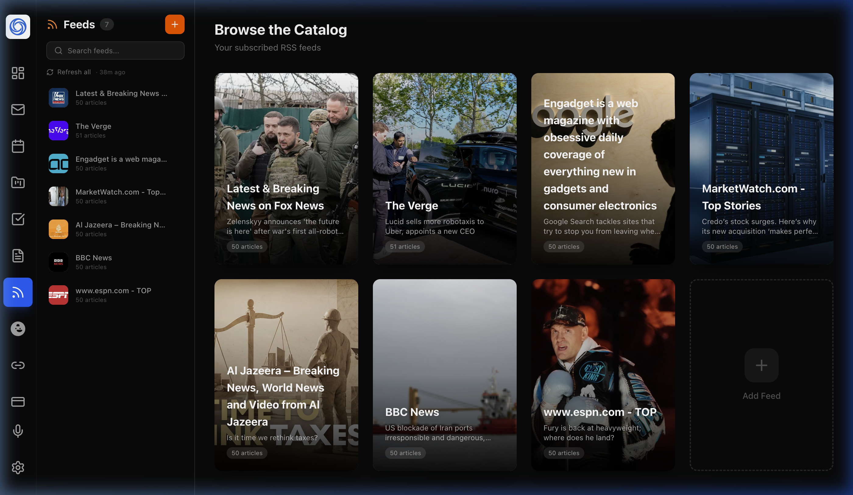 - Auto-refresh with article count per feed